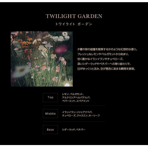 ●夕暮れ時の庭園を散策するかのような、幻想的な「トワイライト・ガーデン」の香り。